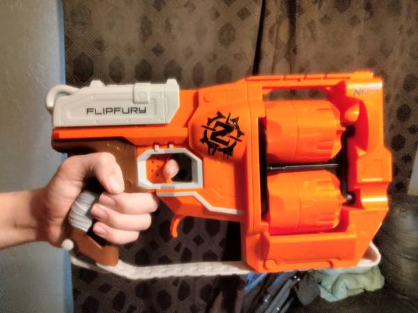 Some hi-end Nerf guns, along with a handful of generic guns, a box full of various darts.