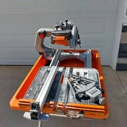 RIDGID introduces the 8 in. Wet Tile Saw with a new drop gate style table, allowing for unlimited rip cut capacity on plank tile. The powerful 12 Amp, 1.2 HP motor easily moves through natural and manmade tile and pavers. The oversized cut capacity is capable of cutting through 4 in. wall blocks in just two passes. Our innovative new drop gate feature allows users to lower the table fence enabling unlimited rip cut capacity on plank style tile. The die-cast aluminum table provides solid support and upgraded dual-sealed ball bearing rollers improve table stability at your worksite. The optimized water nozzle system, guard baffle system, wrap around rubber splash guard, rear water tray, and isolation wall provide maximum water efficiency and cleaner worksites. This saw also comes with a folding stand that has tool-less height adjustment and scratch resistant feet to help protect flooring. This tile saw is backed by an industry leading warranty, the RIDGID Lifetime Service Agreement. The 12 Amp Corded 8 in. Wet Tile Saw with Stand includes a hex wrench, an 8 in. diamond cutting wheel