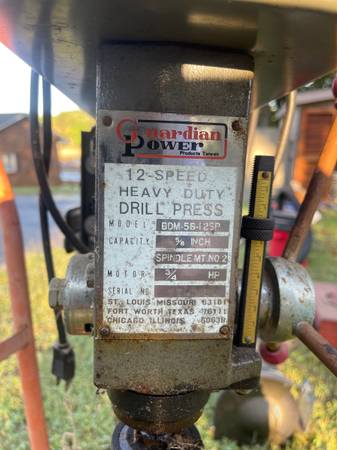 Guardian Power 12 Speed Drill Press. 5/8 Inch Spindle Mount No.2. 3/4 HP Bench model. No delivery available. $125.00.