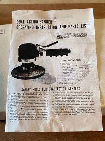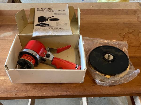 This is an air sander with a six inch pad. I can’t find any branding. It appears to be in excellent condition, and comes with the box and instructions. Cajah’s Mountain area, cash only. Thanks!