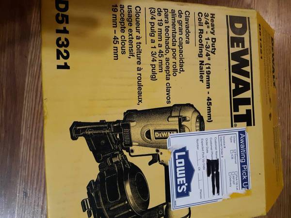 Dewalt roofing nail air gun. Only used twice with almost a full box of tacks . I purchased from Lowes. 150.00 firm for gun and tacks.