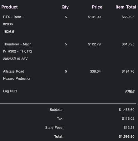 used for about two weeks before i totaled my car, and got a new car with a different lug pattern. basically brand new and with one as a spare. $500 OBO, i’m located in hickory, nc. spent over 1.5k...