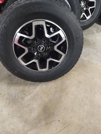 Came off Bronco Tires Bridgestone Dueler AT 255/70/18 Bolt pattern 6×139.7 Fits several makes of vehicles Have a few sets Under a 100 miles to 10 k miles Could only enter one number under price...